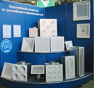 В этом году на выставочном стенде были заявлены воздухораздающие панели с камерами статического давления - последние разработки завода "Арктос", включающие в себя и эксклюзивные модели, не имеющие аналогов даже за рубежом.